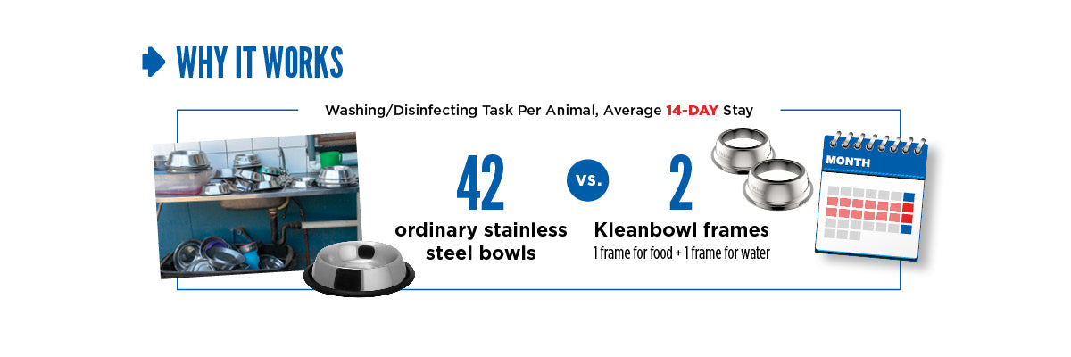 - Reduces Labor Hours Spent Bowl Washing by 80% for Lodging – 70 hours per month saved for 40 occupied enclosures