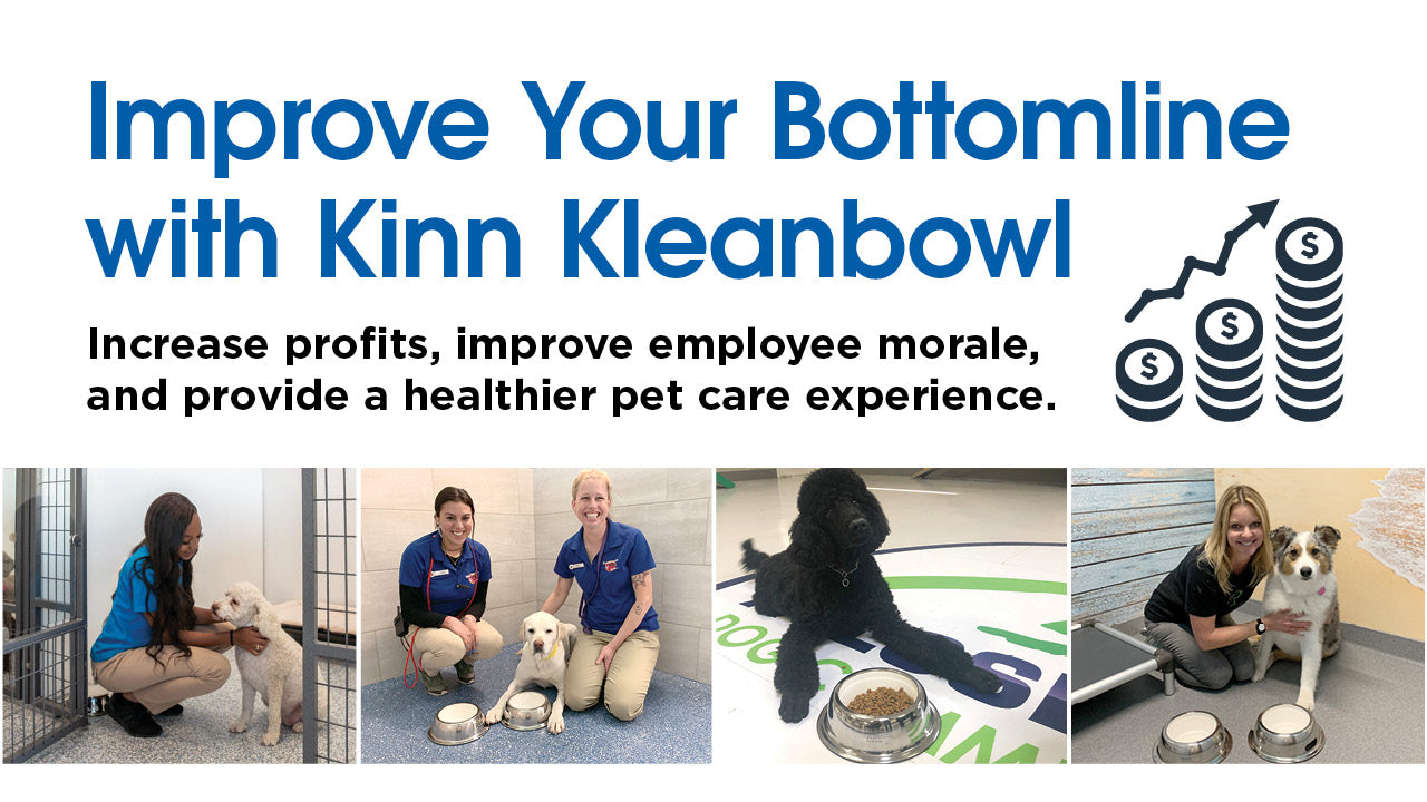 Start today to generate additional profitable revenue by repurposing time from washing dishes to more pet care and by charging a premium for germ-free Kinn Kleanbowl.