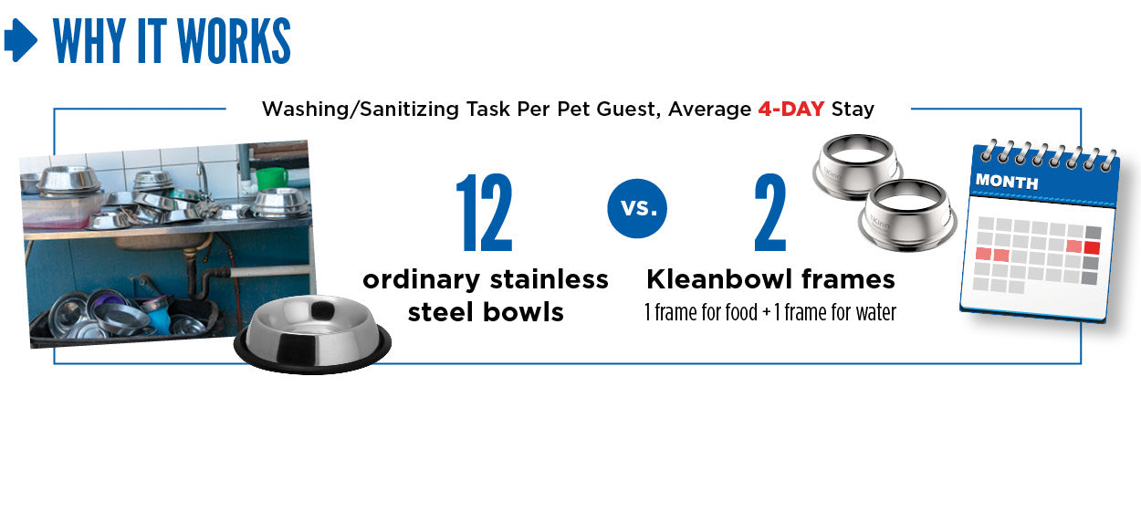 - Labor Cost Savings – Reduce pet bowl cleaning labor and material costs 20-40%
