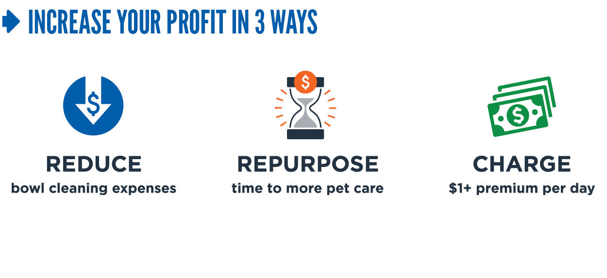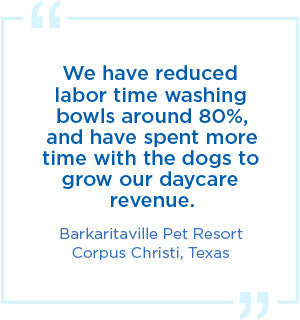 Whether you’re a boarding or board & train facility you know that the cost of labor and time spent cleaning bowls can cost you a significant amount of money in overtime.